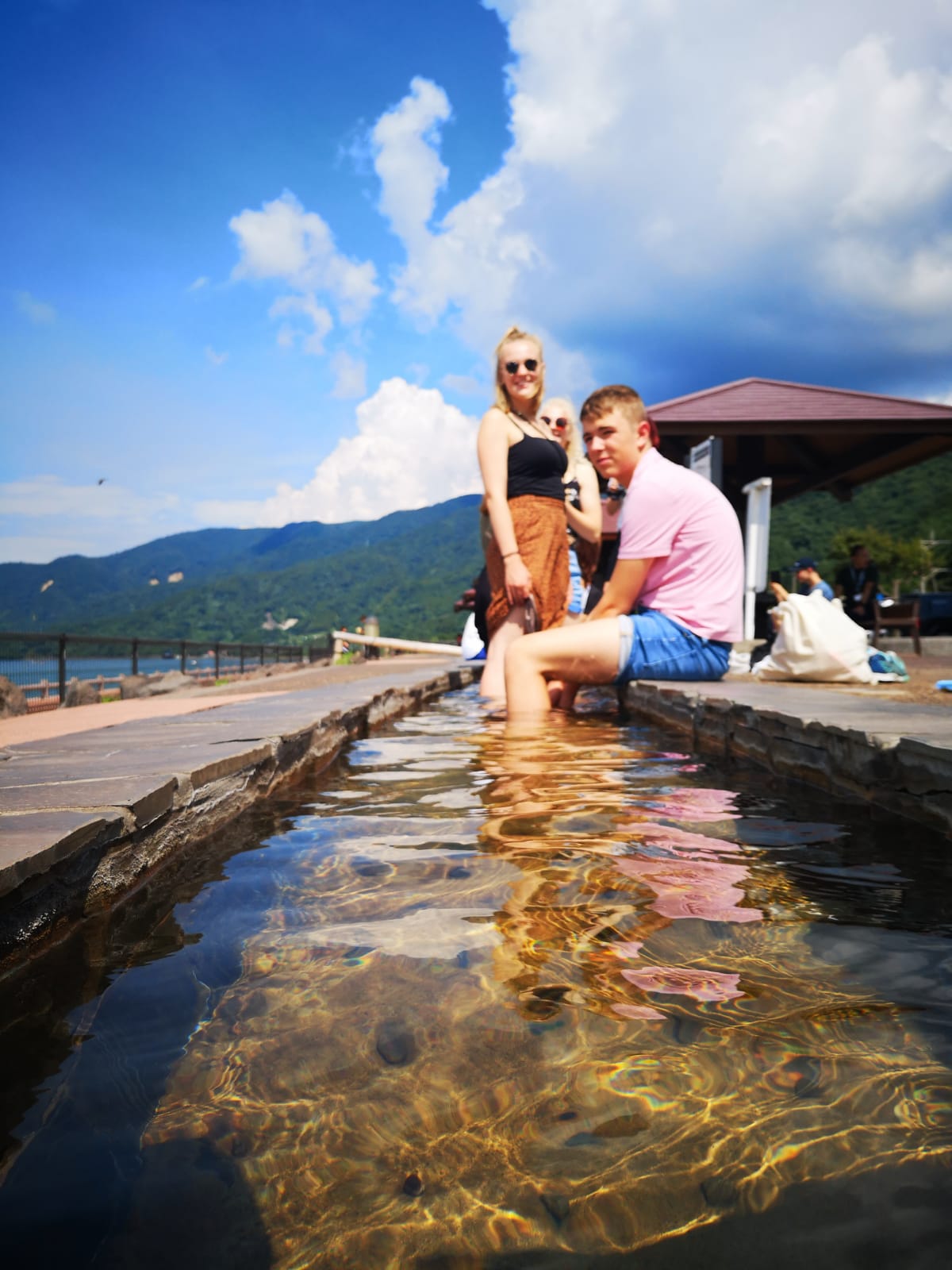 Danach ging es weiter zum Fußbad mit Ausblick auf den Vulkan Sakurajima. Diesen konnten wir vom Arimura-Aussichtspunkt aus noch besser beobachten.